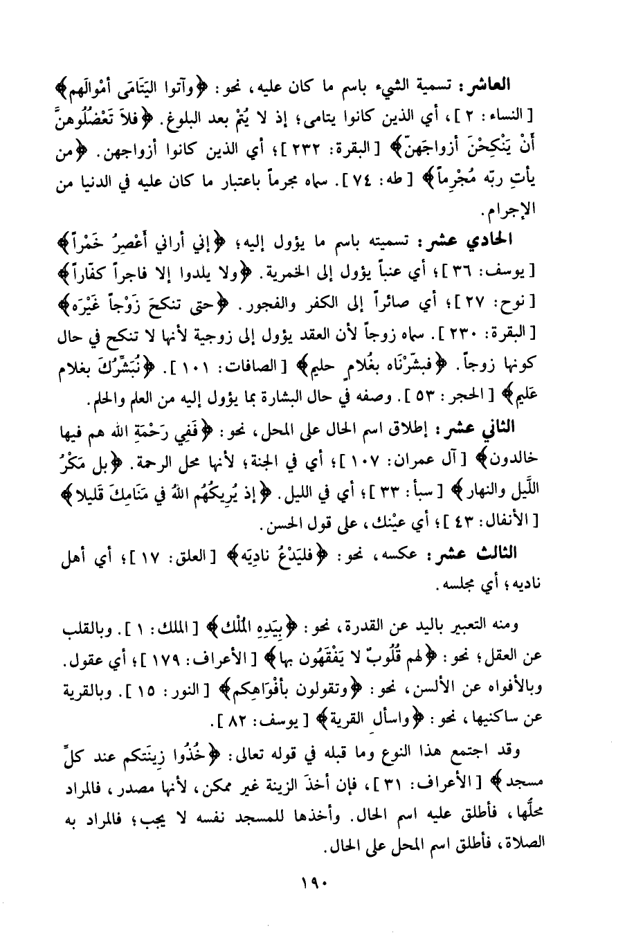 الثالث عشر: عكسه، نحو: (فليَدع نادِيَه) ، أى أهل ناديه، أي مجلسه.