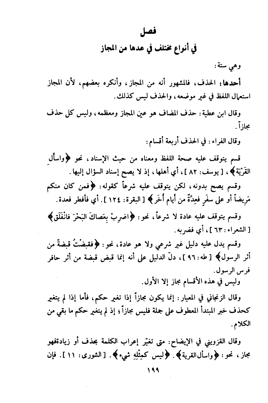 أحدها: الحذف، فالمشهور أنه من المجاز، وأنكره بعضهم، لأن المجاز