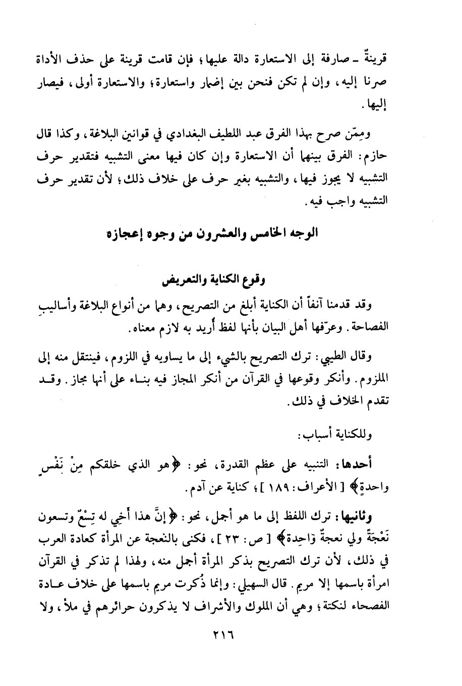 الوجه الخامس والعشرون من وجوه إعجازه (وقوع الكناية والتعريض)