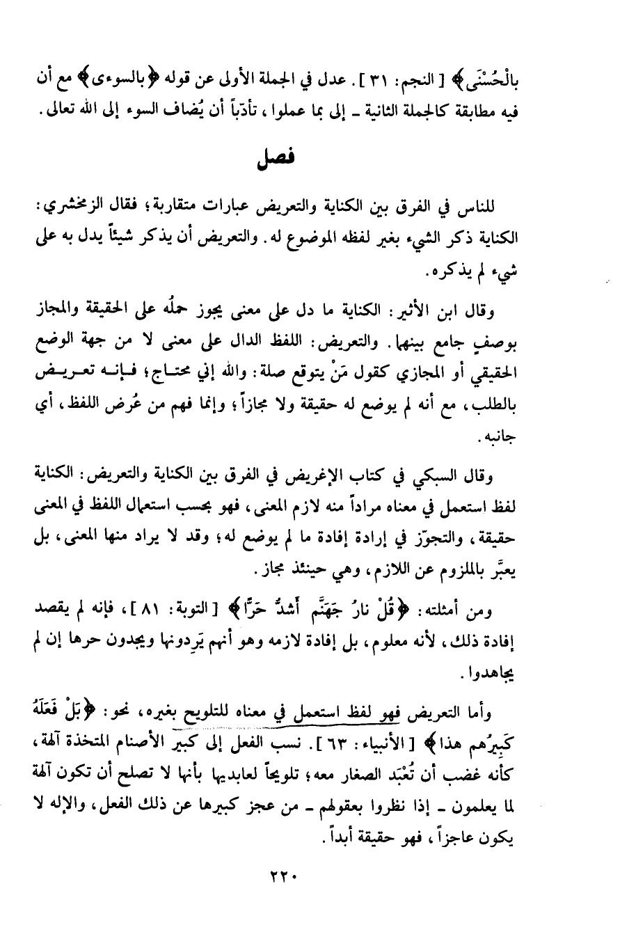 وقال السبكي في كتاب الإغريض في الفرق بين الكناية والتعريض: الكناية