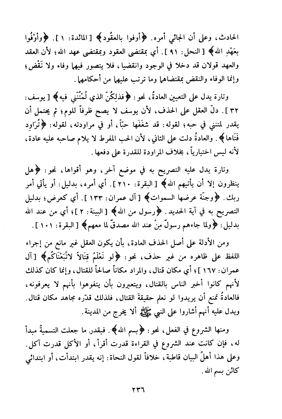 ومن الأدلة على أصل الحذف العادة، بأن يكون العقل غير مانع من إجراء