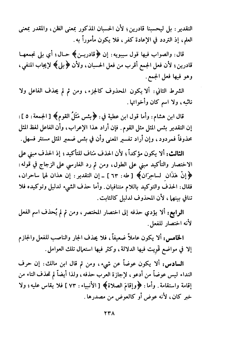 الثالث: ألا يكون مؤكداً، لأن الحذف مناف للتأكيد، إذ الحذف مبني على
