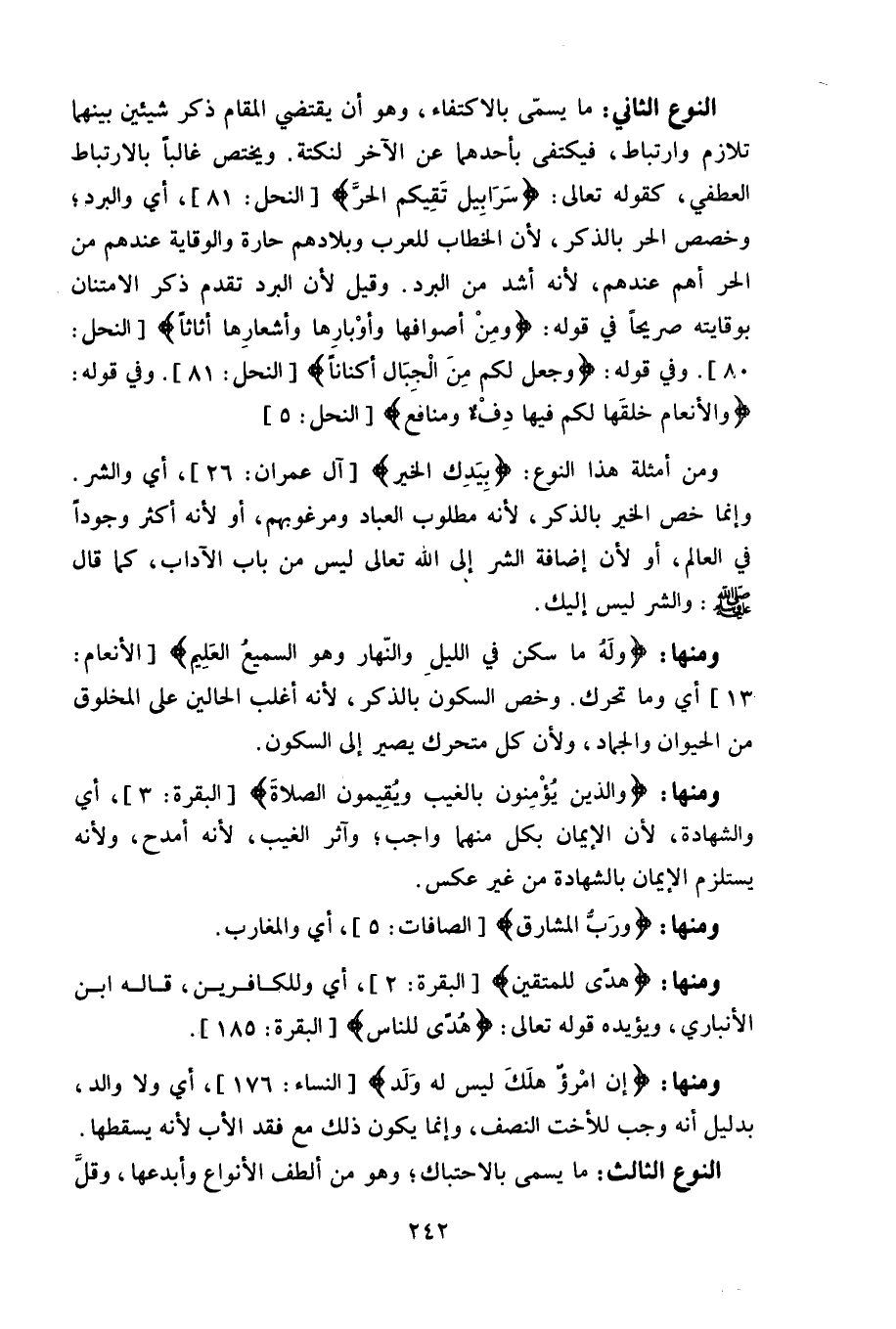 النوع الثالث: ما يسمى بالاحتباك، وهو من ألطف الأنواع وأبدعها،