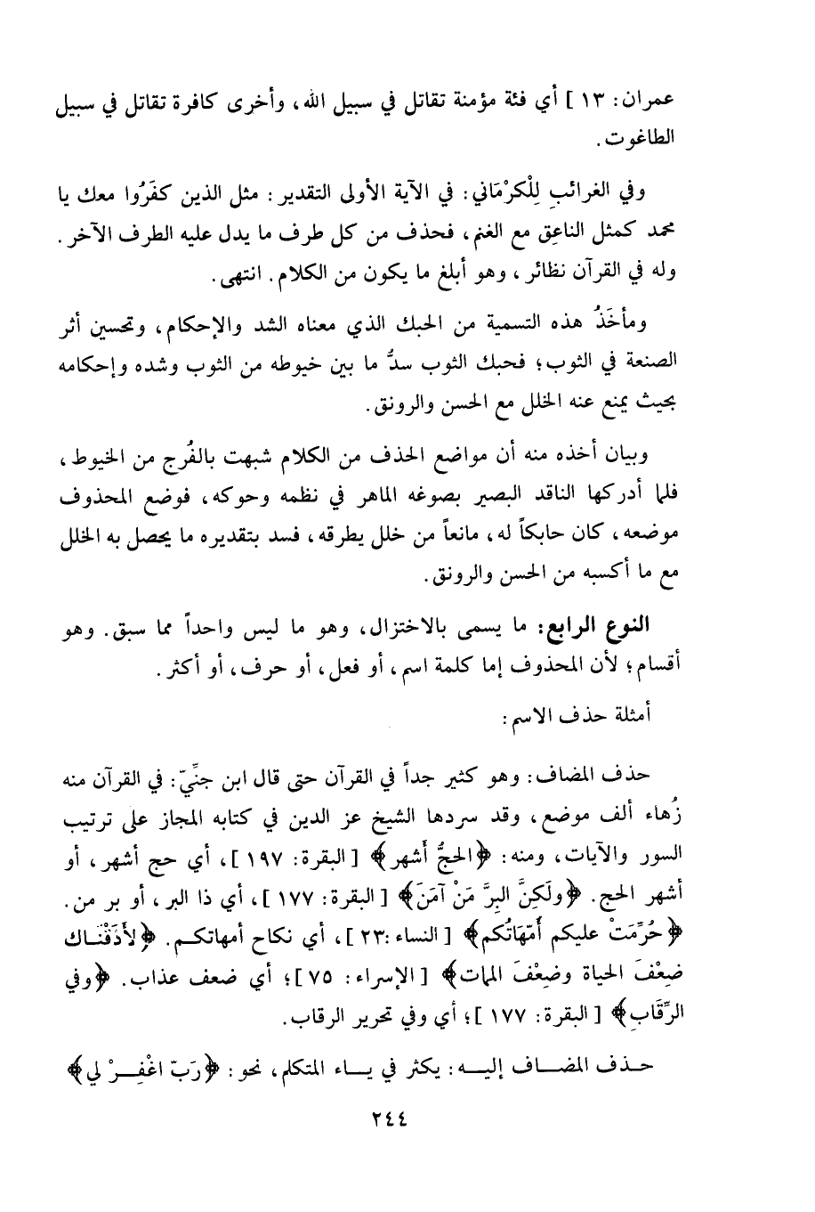 حذف المضاف: وهو كثير جداً في القرآن حتى قال ابن جنَيّ: في القرآن منه