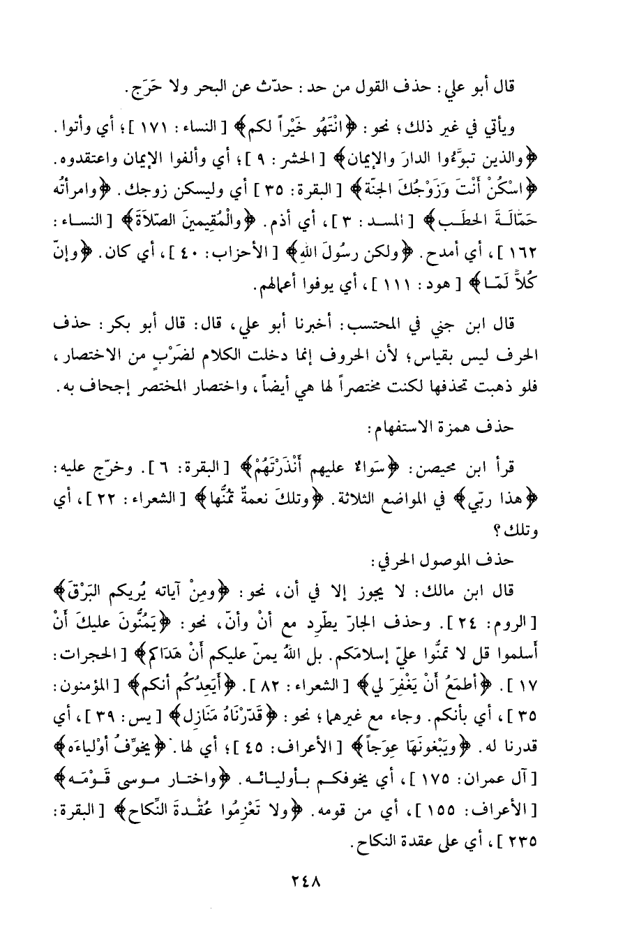 قال ابن جني في المحتسب: أخبرنا أبو على، قال: قال أبو بكر: حذف