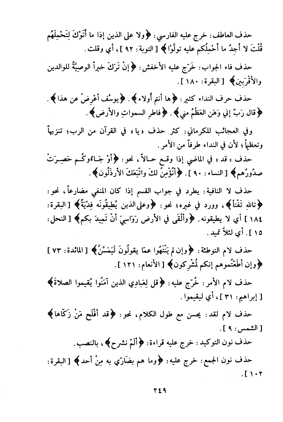 حذف لا النافية: يطرد في جواب القسم إذا كان المنفي مضارعاً، نحو: