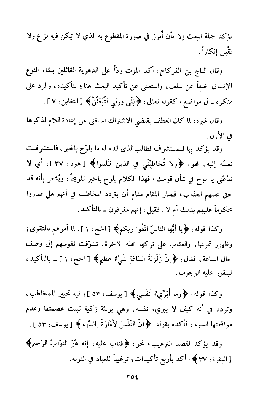 وقد يؤكد لقصد الترغيب، نحو: (فَتَابَ عَلَيْهِ إِنَّهُ هُوَ التَّوَّابُ الرَّحِيمُ)