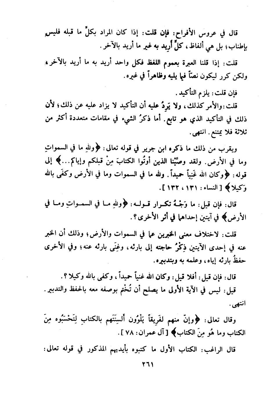 بإطناب، بل هي ألفاظ، كل أرِيد به في ما أريد بالآخر.