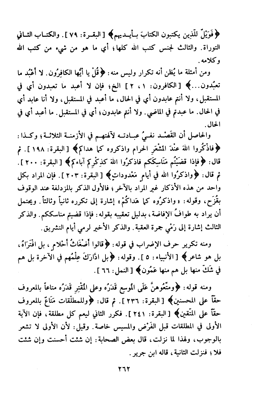 ومن أمثلة ما يُظن أنه تكرار وليس منه: (قُلْ يَا أَيُّهَا الْكَافِرُونَ (1) لَا أَعْبُدُ مَا تَعْبُدُونَ (2) .