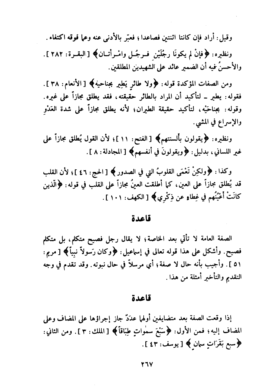 ومن الصفات المؤكدة قوله: (وَلَا طَائِرٍ يَطِيرُ بِجَنَاحَيْهِ) .