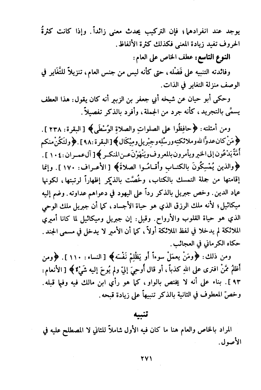ومن أمثلته: (حافِظُوا على الصلواتِ والصلاةِ الوُسطَى) .