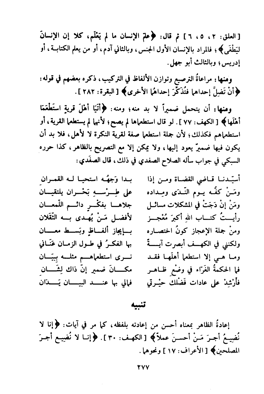 رَأَيْت كِتَابَ اللَّهِ أَكْبَرَ مُعْجِزٍ ... لِأَفْضَلَ مَنْ يَهْدِي بِهِ الثَّقَلَانِ