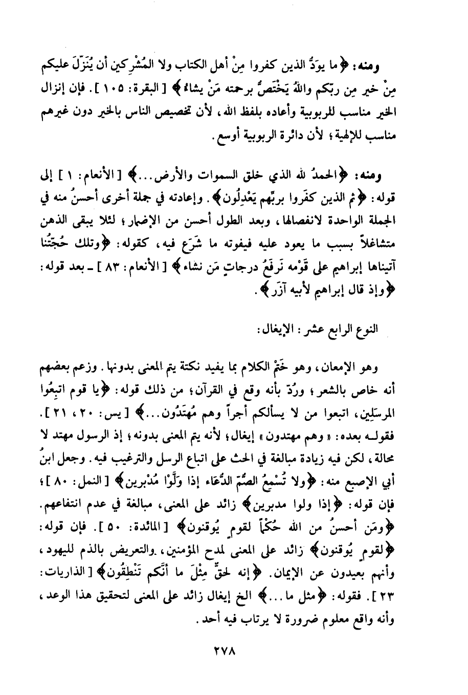 وزعم بعضهم أنه خاص بالشعر، ورُدّ بأنه وقع في القرآن، من ذلك قوله: (يَا قَوْمِ اتَّبِعُوا الْمُرْسَلِينَ (20) اتَّبِعُوا مَنْ لَا يَسْأَلُكُمْ أَجْرًا وَهُمْ مُهْتَدُونَ (21) .