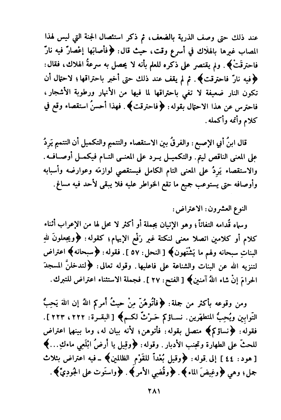 فهذا أحسنُ استقصاء وقع في كلام وأتمه وأكمله.