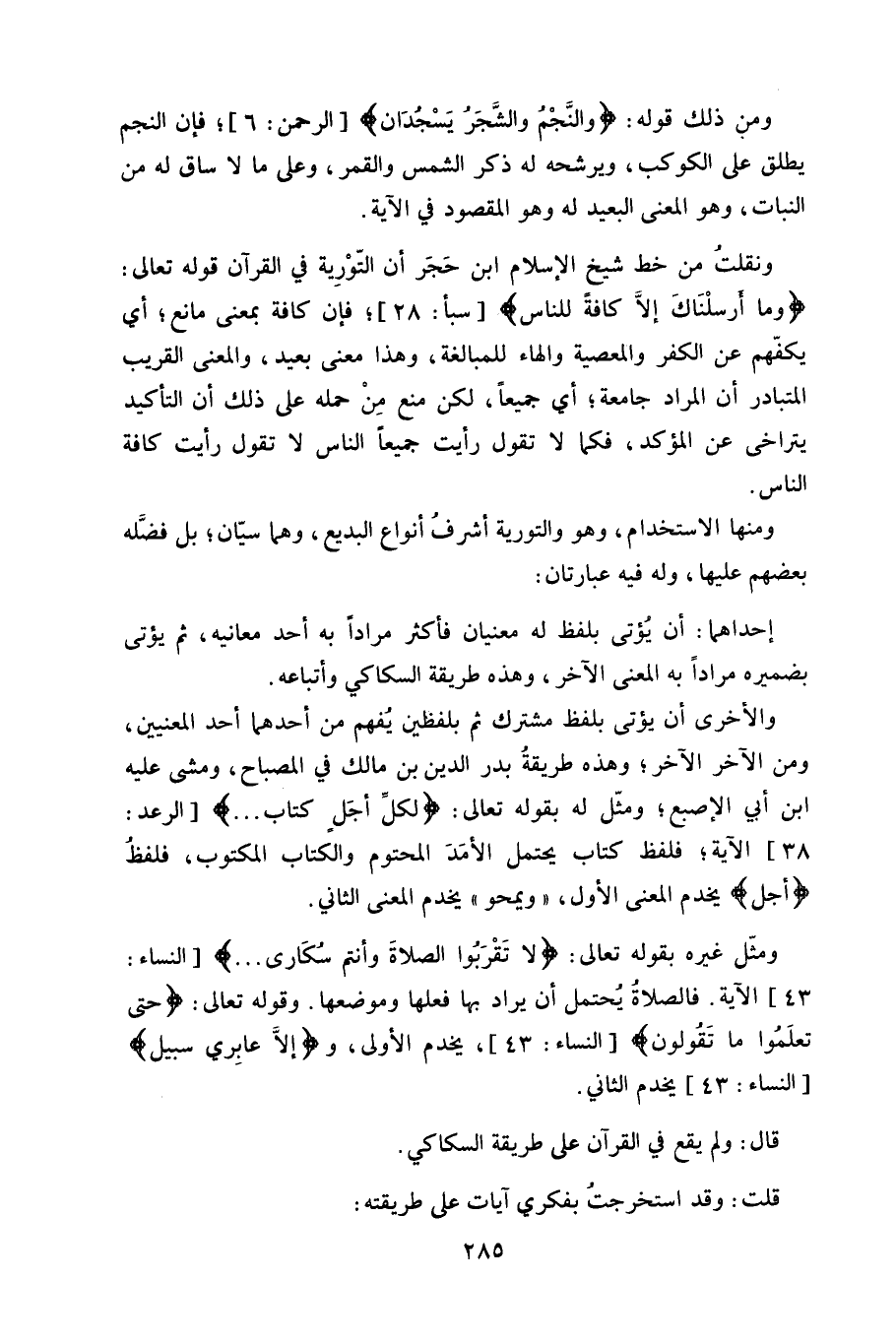 ونقلتُ من خط شيخ الإسلام ابن حَجَر أن التّوْرِية في القرآن قوله تعالى: