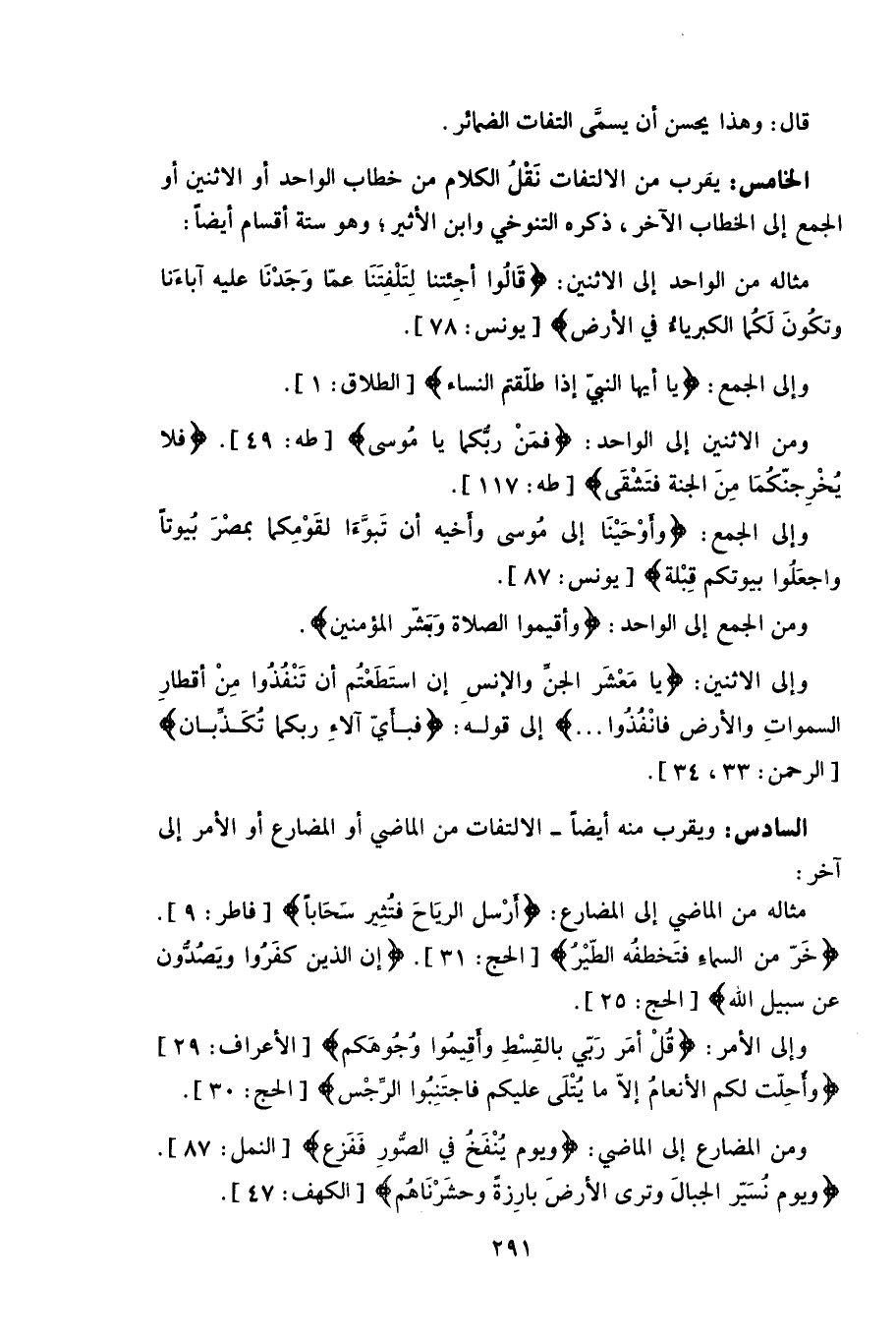 السادس: ويقرب منه أيضاً - الالتفات من الماضي أو المضارع أو الأمر إلى