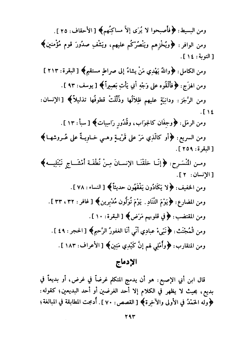 ومن المنْسَرح: (إنّا خلَقْنَا الإنسانَ مِنْ نُطْفَة أمْشَاج نَبْتَلِيه) .