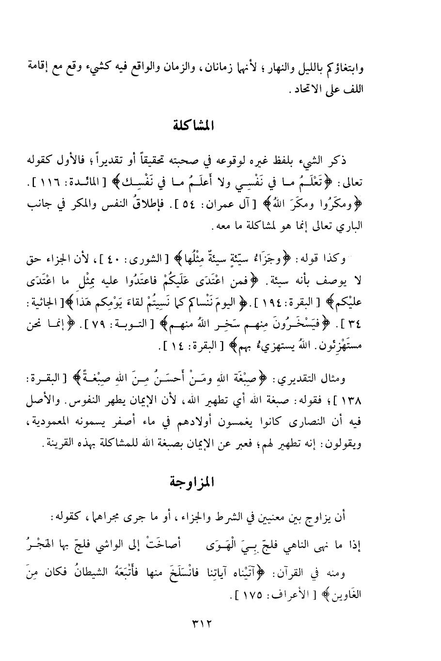 ذكر الشيء بلفظ غيره لوقوعه في صحبته تحقيقاً أو تقديرا، فالأول كقوله