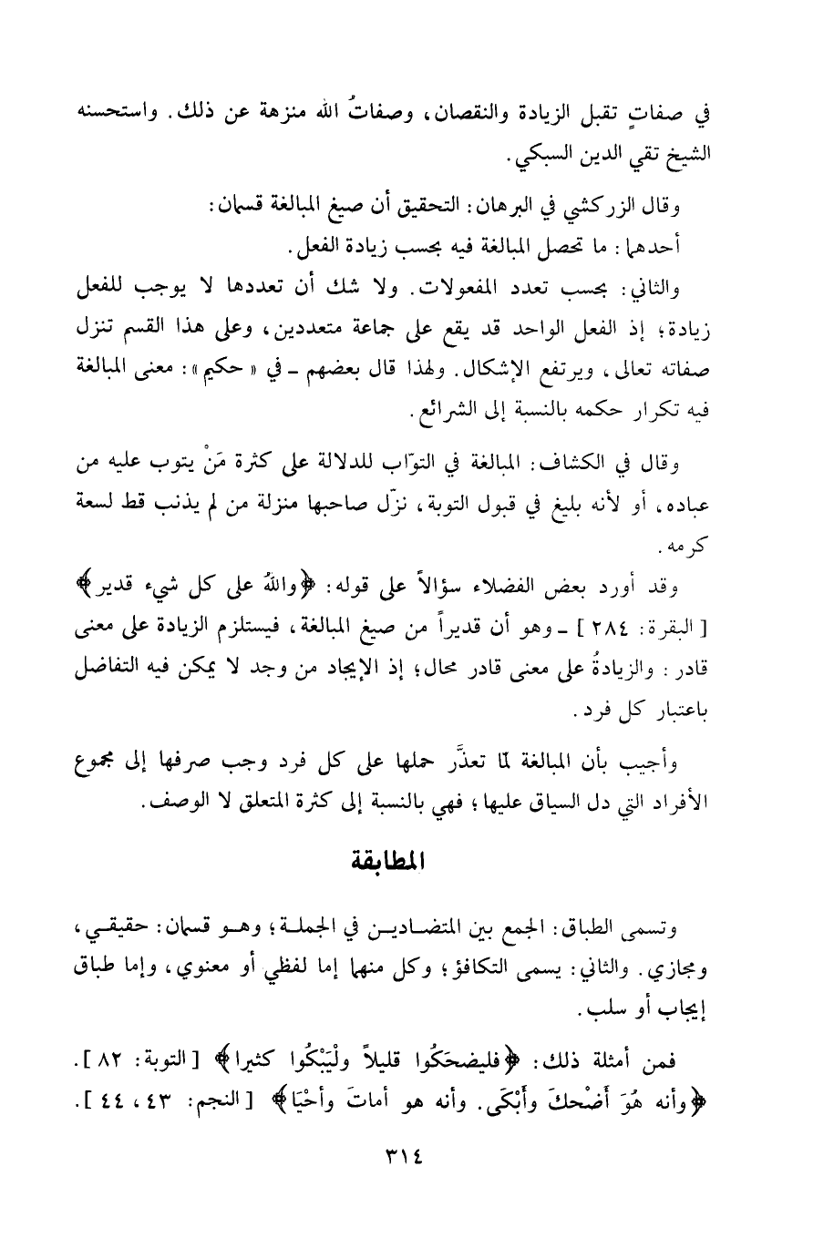 وقال الزركشي في البرهان: التحقيق أن صيغ المبالغة قسمان: