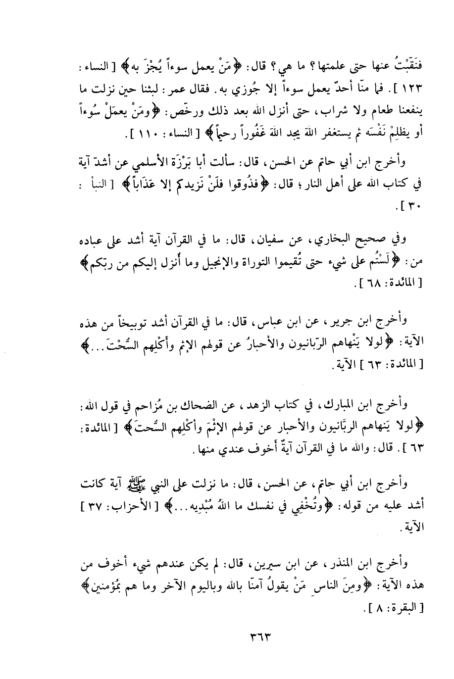 وأخرج ابن أبي حاتم عن الحسن، قال: سألت أبا بَرْزَة الأسلمي عن أشدّ آية