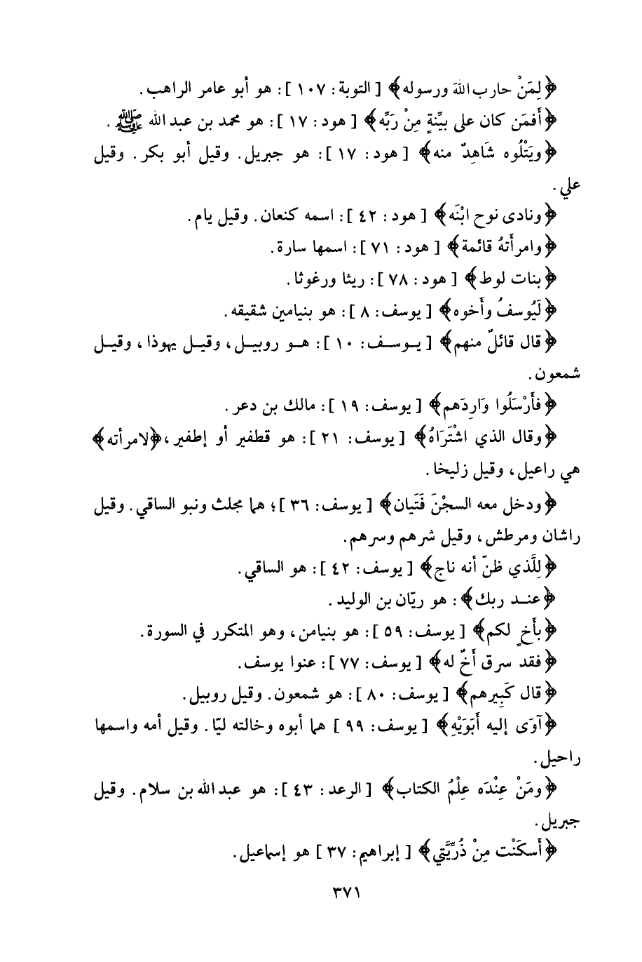 (ويَتْلوه شَاهِدٌ منه) أهود: 17،: هو جبريل. وقيل أبو بكر. وقيل