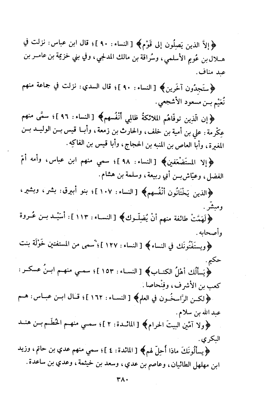 (إلا المستَضْعَفين) ، سمي منهم ابن عباس، وأمه أمّ الفضل، وعيّاش بن أبي ربيعة، وسلمة بن هشام.