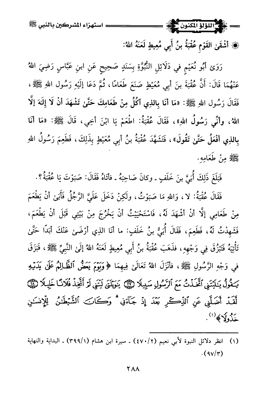 (¬1) أُبَيُّ بنُ خَلَفٍ قتَلهُ الرسول -صلى اللَّه عليه وسلم- يومَ أُحُدٍ، وهو الوَحِيدُ الذي قتلهُ الرَّسول -صلى اللَّه عليه وسلم-، فلمَّا قتلَهُ: قال -صلى اللَّه عليه وسلم-: "اشْتَدَّ غَضَبُ اللَّهِ على رَجُلٍ قتَلَهُ رسول اللَّه". أخرجه البخاري في صحيحه - كتاب المغازي - باب ما أصاب النبي -صلى اللَّه عليه وسلم- من الجِرَاح يوم أُحد - رقم الحديث (4073) - وأخرجه الإمام مسلم في صحيحه - كتاب الجهاد والسير - باب اشْتِدَاد غضب اللَّه على مَنْ قتله -صلى اللَّه عليه وسلم- رقم الحديث (1793).
