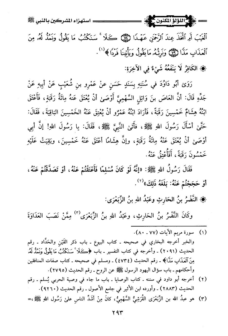 * تَهَكُّمُ (¬2) العَاصِ بنِ وَائِلٍ (¬3) بِرَسُولِ اللَّهِ -صلى اللَّه عليه وسلم-: