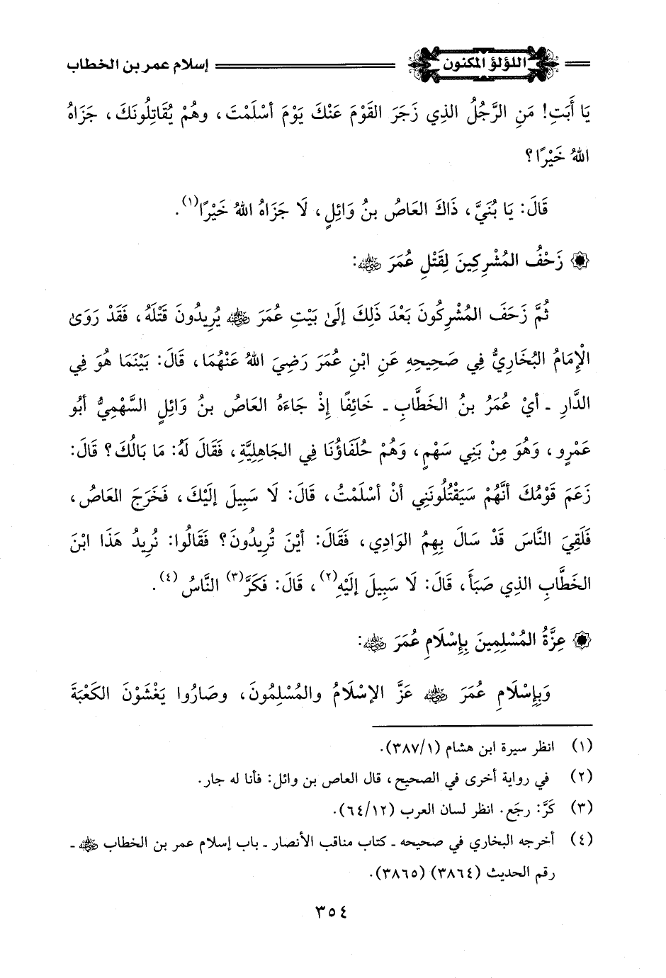 (¬3) أخرجه البخاري في صحيحه - كتاب مناقب الأنصار - باب إسلام عمر بن الخطاب -رضي اللَّه عنه- رقم الحديث (3864) (3865).