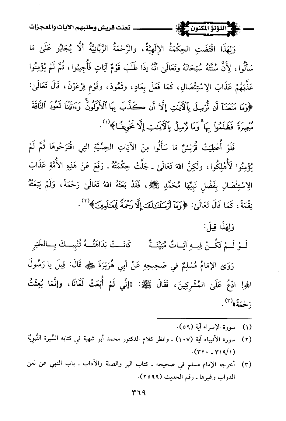 (¬2) سورة الأنبياء آية (107) - وانظر كلام الدكتور محمد أبو شهبة فِي كتابه السِّيرة النَّبوِيَّة (1/ 319 - 320).