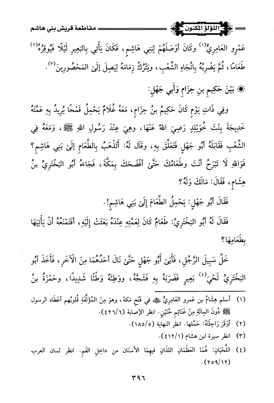 عَمْرٍو العَامِرِيُّ (¬1) وكَانَ أوْصَلَهُمْ لِبَنِي هَاشِمٍ، فكَانَ يَأْتِي بِالبَعِيرِ لَيْلًا فَيُوقِرُهُ (¬2) طَعَامًا، ثُمَّ يَضْرِبُهُ بِاتِّجَاهِ الشِّعْبِ، ويَتْرُكُ زِمَامَهُ لِيَصِلَ إِلَى المَحْصُورِينَ (¬3).