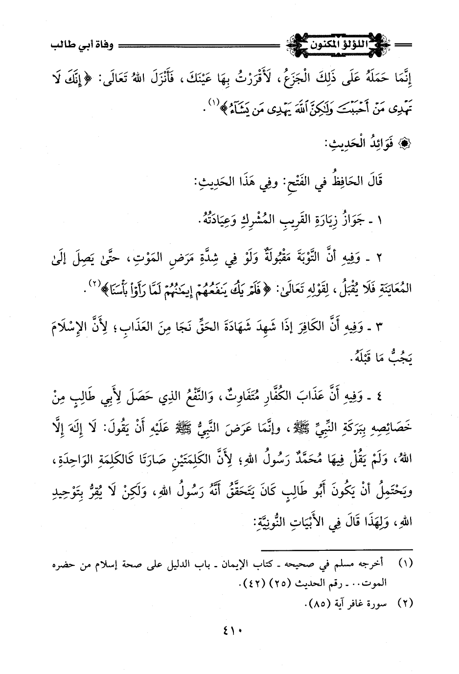 (¬1) أخرجه مسلم في صحيحه - كتاب الإيمان - باب الدليل على صحة إسلام من حضره الموت .. - رقم الحديث (25) (42).