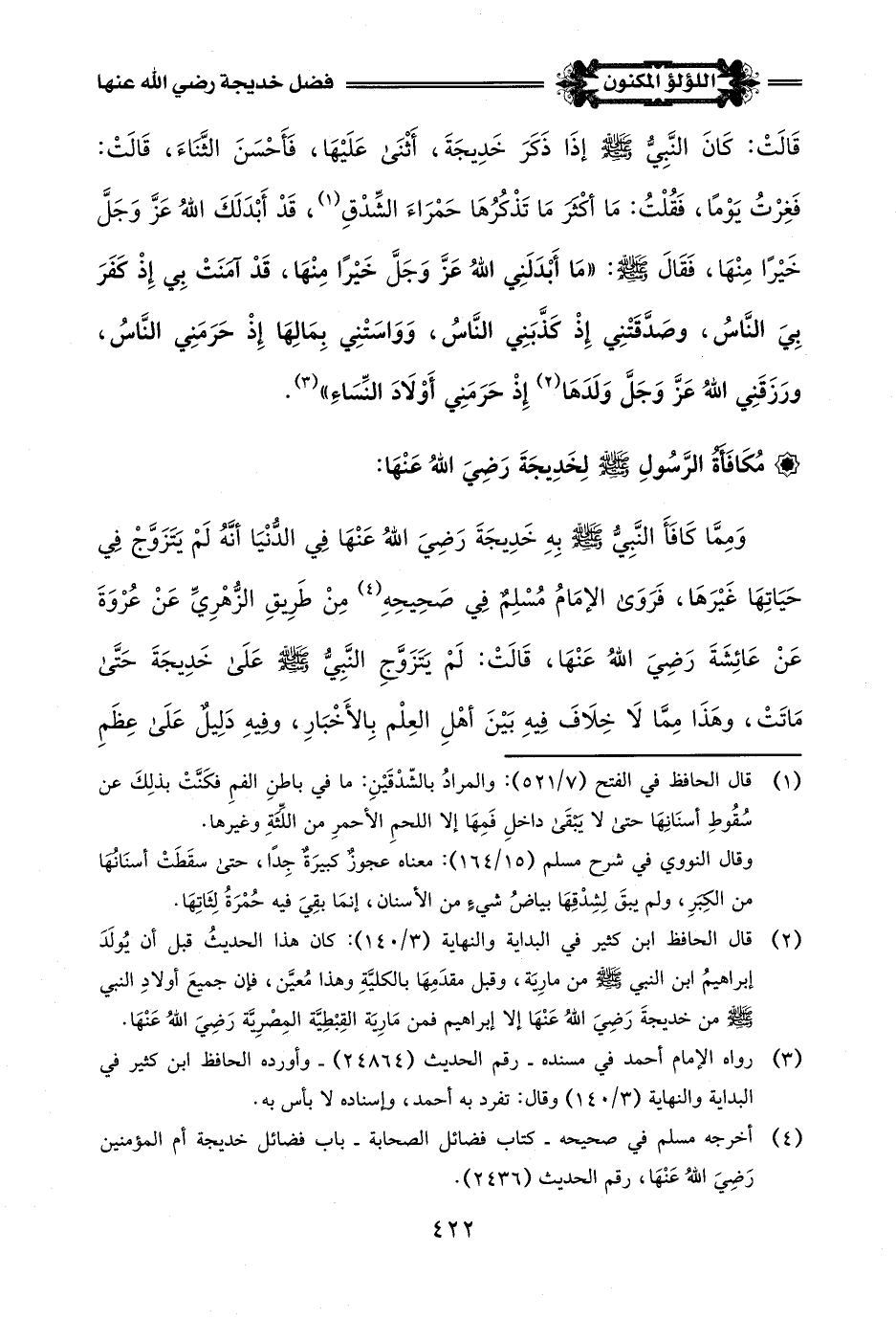 (¬4) أخرجه مسلم في صحيحه - كتاب فضائل الصحابة - باب فضائل خديجة أم المؤمنين رَضِيَ اللَّهُ عَنْهَا، رقم الحديث (2436).
