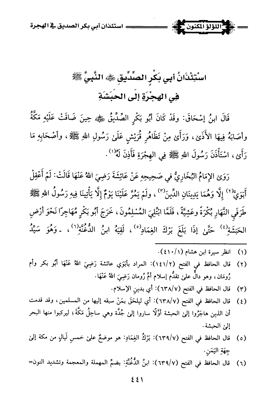 اسْتِئْذَانُ أَبِي بَكْرٍ الصِّدِّيقِ -رضي اللَّه عنه- النَّبِيَّ -صلى اللَّه عليه وسلم- فِي الهِجْرَةِ إِلَى الحَبَشَةِ
