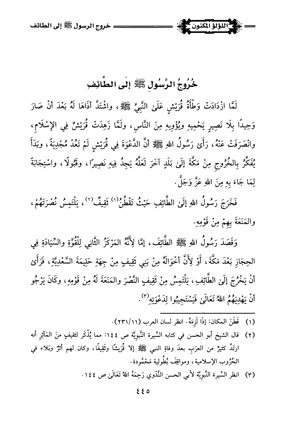 (¬3) انظر السِّيرة النَّبوِيَّة لأبي الحسن النَّدْوي رَحِمَهُ اللَّهُ تَعَالَى ص 144.