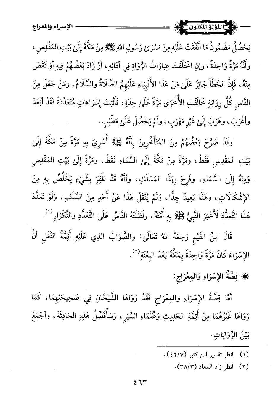 يَحْصُلُ مَضْمُونُ مَا اتَّفَقَتْ عَلَيْهِ مِنْ مَسْرَى رَسُولِ اللَّهِ -صلى اللَّه عليه وسلم- مِنْ مَكَّةَ إلى بَيْتِ المَقْدِسِ، وأَنَّهُ مَرَّةً وَاحِدَةً، وإنِ اخْتَلفَتْ عِبَارَاتُ الرُّوَاةِ فِي أدَائِهِ، أَوْ زَادَ بَعْضُهُمْ فِيهِ أَوْ نَقَصَ مِنْهُ، فَإِنَّ الخَطَأَ جَائِزٌ عَلَى مَنْ عَدَا الأَنْبِيَاءِ عَلَيْهِمُ الصَّلَاةُ والسَّلَامُ، ومَنْ جَعَلَ مِنَ النَّاسِ كُلَّ رِوَايَةٍ خَالَفَتِ الأُخْرَى مَرَّةً عَلَى حِدَةٍ، فَأَثْبَتَ إِسْرَاءَاتٍ مُتَعَدِّدَةً فَقَدْ أبْعَدَ وأغْرَبَ، وهَرَبَ إلى غَيْرِ مَهْرَبٍ، وَلَمْ يَحْصُلْ عَلَى مَطْلِبٍ.