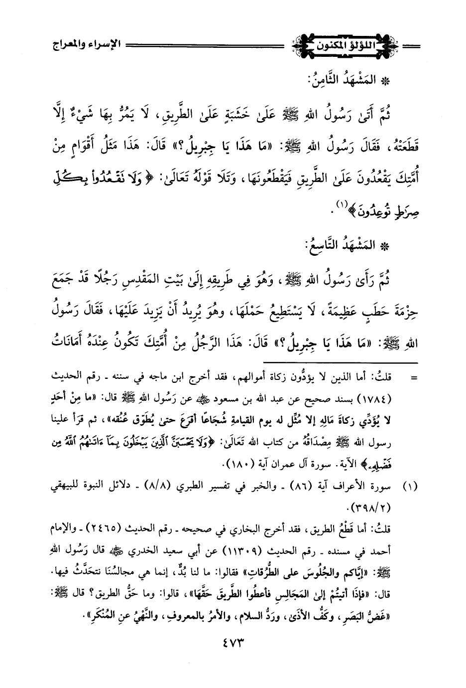 = قلتُ: أما الذين لا يؤدُّون زكاة أموالهم، فقد أخرج ابن ماجه في سننه - رقم الحديث (1784) بسند صحيح عن عبد اللَّه بن مسعود -رضي اللَّه عنه- عن رَسُول اللَّهِ -صلى اللَّه عليه وسلم- قال: "ما مِنْ أحَدٍ لا يُؤَدِّي زكاةَ مَالِهِ إلا مُثِّل له يوم القيامةِ شُجَاعًا أقرَعَ حتى يُطَوّق عُنُقه"، ثم قرَأ علينا رسول اللَّه -صلى اللَّه عليه وسلم- مِصْدَاقُهُ من كتاب اللَّه تَعَالَى: {وَلَا يَحْسَبَنَّ الَّذِينَ يَبْخَلُونَ بِمَا آتَاهُمُ اللَّهُ مِنْ فَضْلِهِ} الآية. سورة آل عمران آية (180).