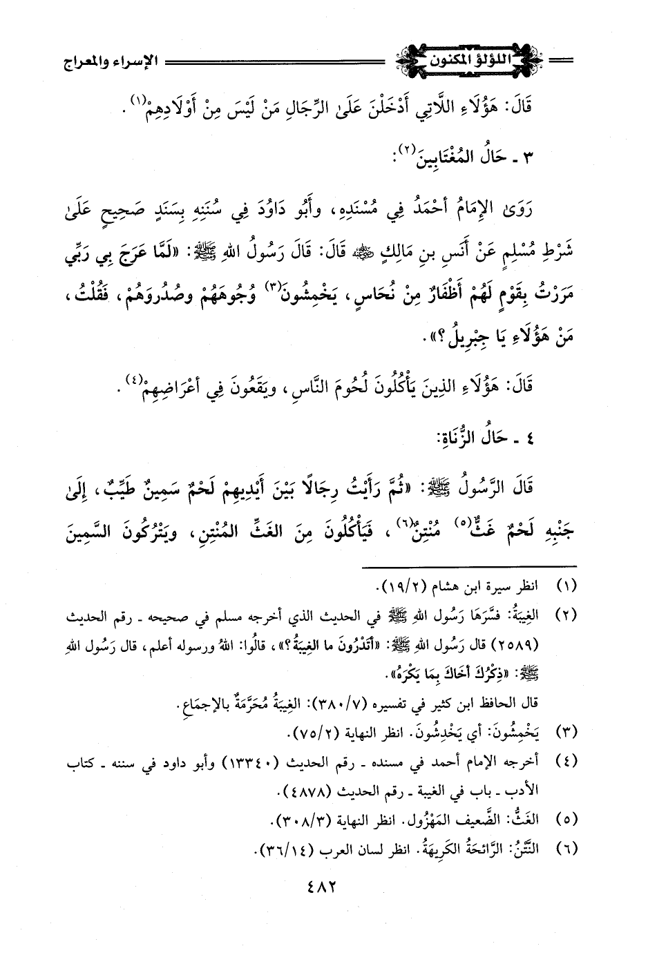 (¬4) أخرجه الإِمام أحمد في مسنده - رقم الحديث (13340) وأبو داود في سننه - كتاب الأدب - باب في الغيبة - رقم الحديث (4878).