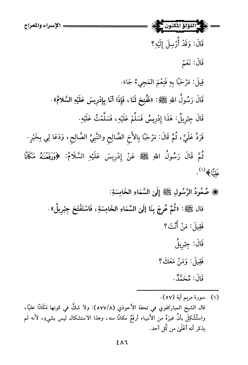 قال -صلى اللَّه عليه وسلم-: "ثُمَّ عُرِجَ بِنَا إِلَى السَّمَاءِ الخَامِسَةِ، فَاسْتَفْتَحَ جِبْرِيلُ".