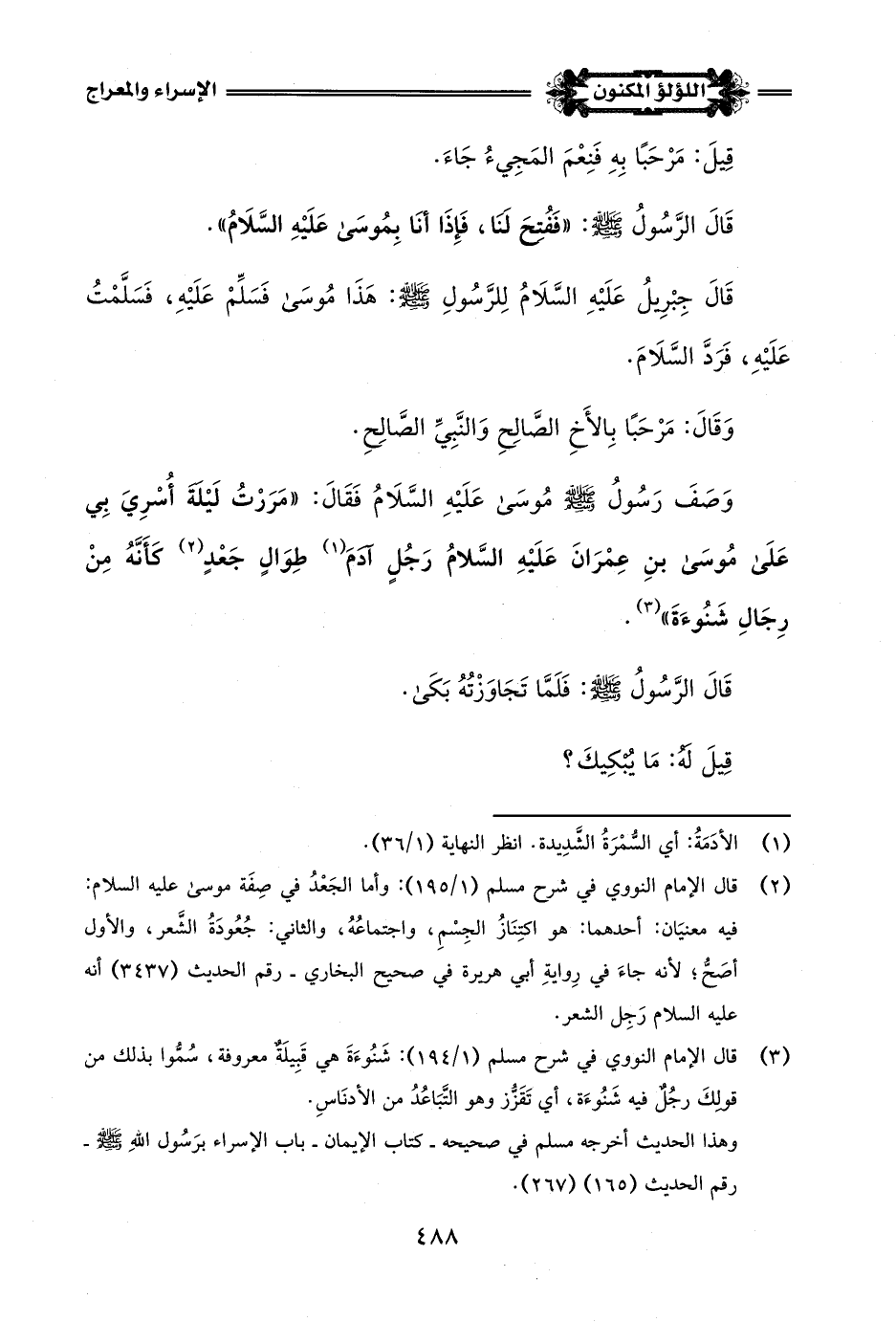 وهذا الحديث أخرجه مسلم في صحيحه - كتاب الإيمان - باب الإسراء برَسُول اللَّهِ -صلى اللَّه عليه وسلم- رقم الحديث (165) (267).