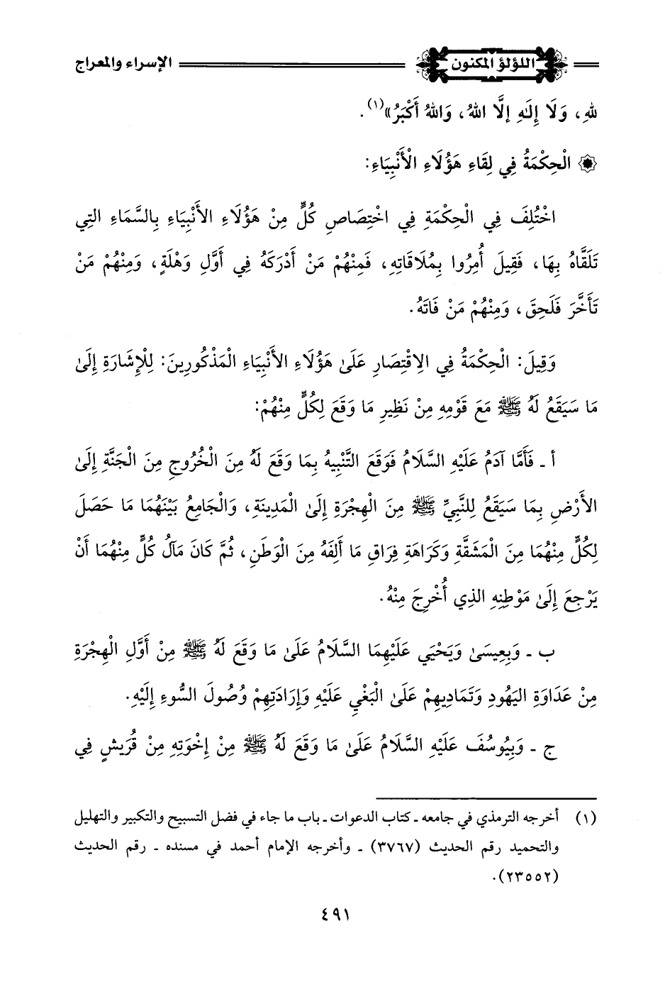 * الْحِكْمَةُ فِي لِقَاءِ هَؤلَاءِ الْأَنْبِيَاءِ: