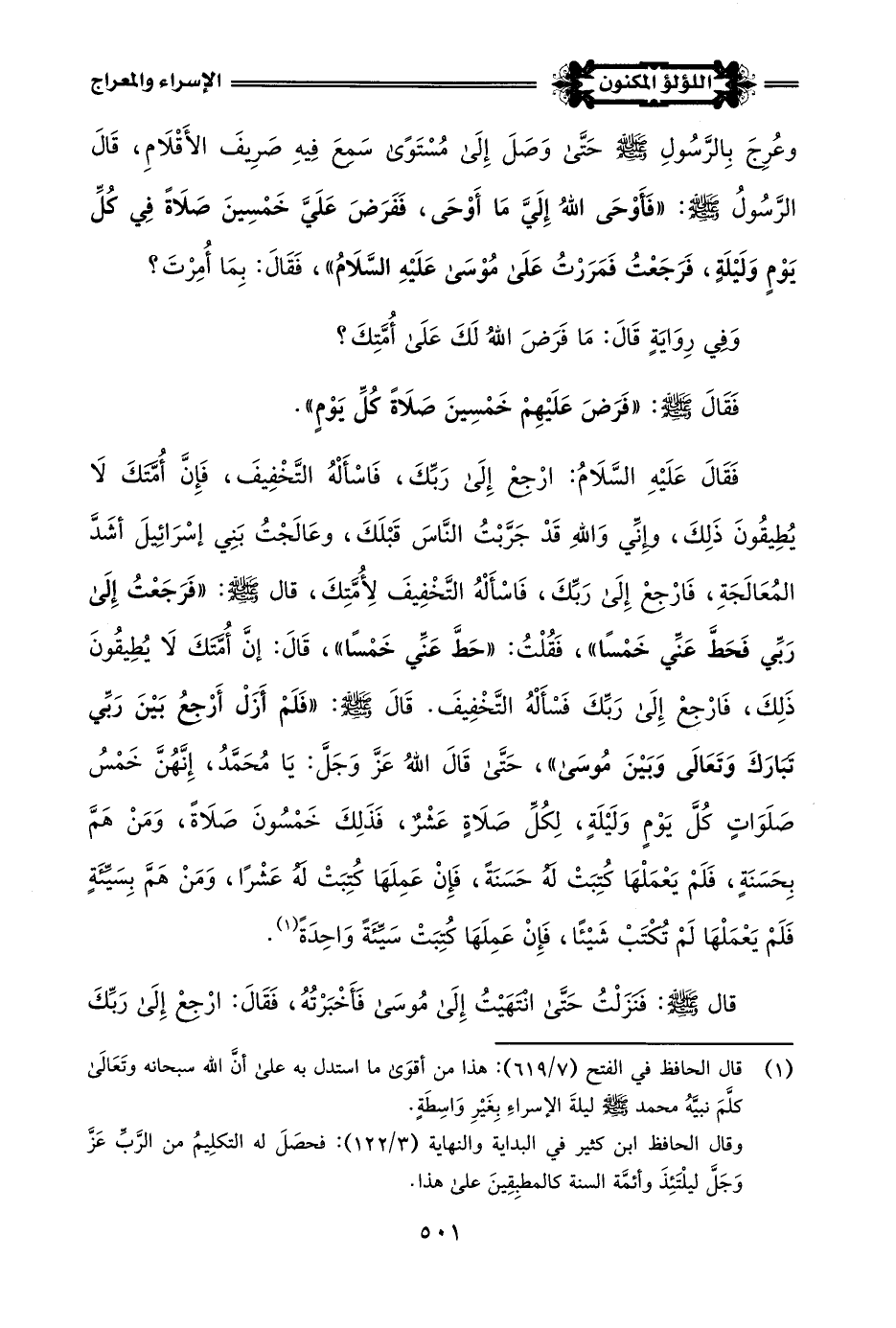(¬1) قال الحافظ في الفتح (7/ 619): هذا من أقوَى ما استدل به على أَنَّ اللَّه سبحانه وتَعَالَى كلَّمَ نبيَّهُ محمد -صلى اللَّه عليه وسلم- ليلةَ الإسراءِ بِغَيْرِ وَاسِطَةٍ.