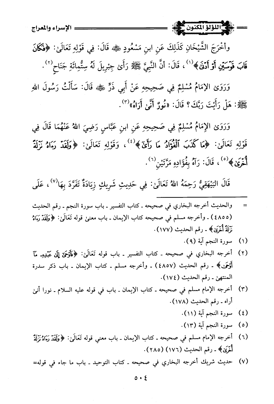 (¬2) أخرجه البخاري في صحيحه - كتاب التفسير - باب قوله تَعَالَى: {فَأَوْحَى إِلَى عَبْدِهِ مَا أَوْحَى} - رقم الحديث (4857) - وأخرجه مسلم - كتاب الإيمان - باب ذكر سدرة المنتهى رقم الحديث (174).