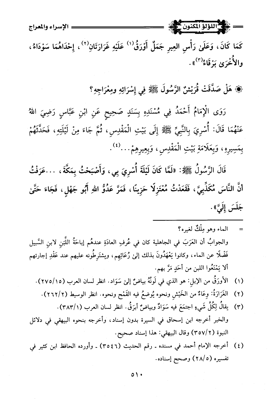 * هَلْ صَدَّقَتْ قُرَيْشٌ الرَّسُولَ -صلى اللَّه عليه وسلم- فِي إِسرَائِهِ ومِعْرَاجِهِ؟