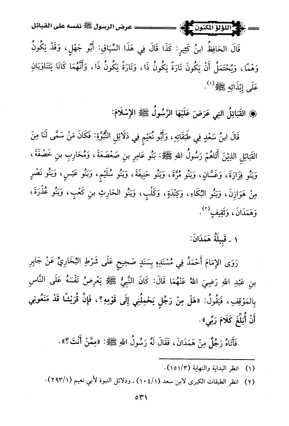 * القَبَائِلُ التِي عَرَضَ عَلَيْهَا الرَّسُولُ -صلى اللَّه عليه وسلم- الإِسْلَامَ: