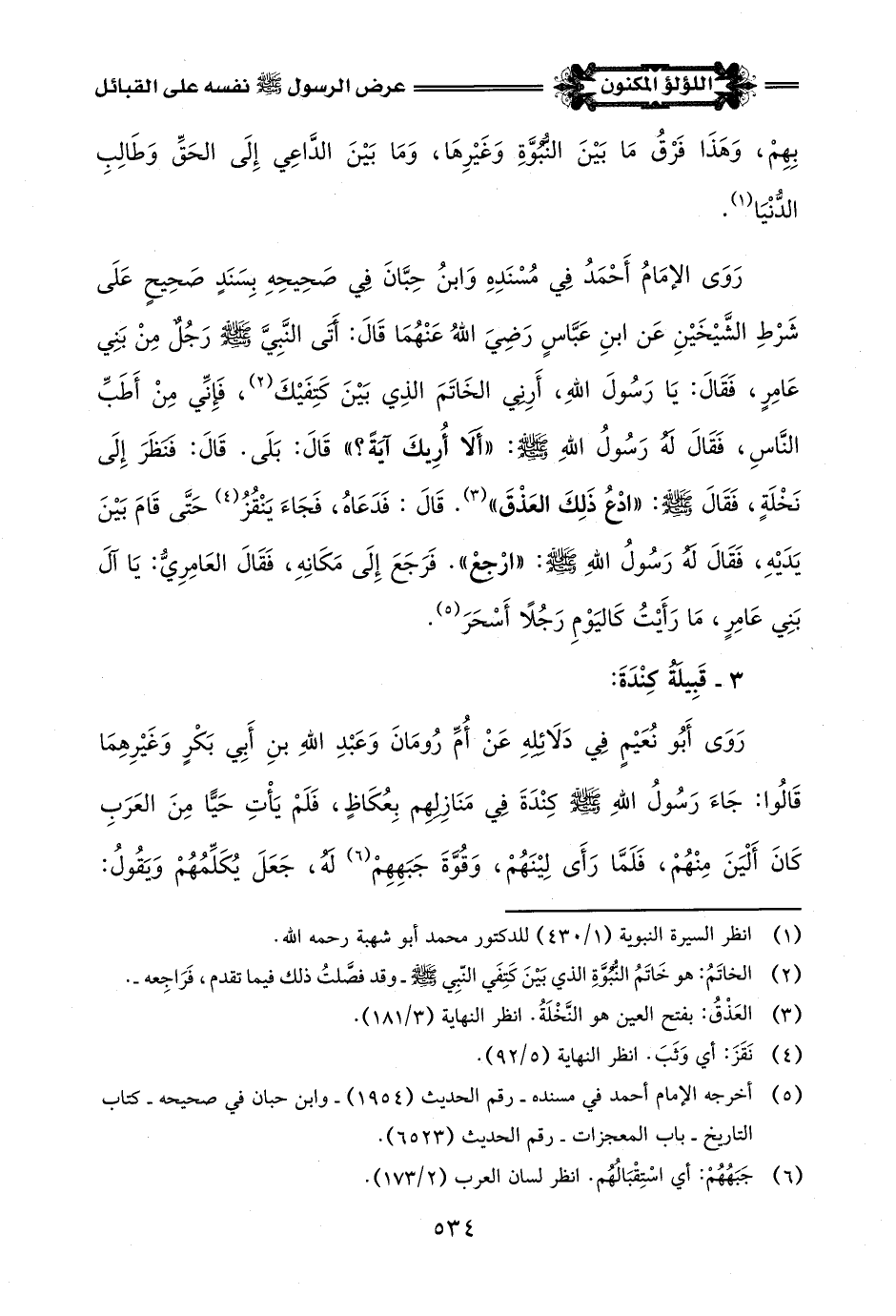 (¬2) الخاتَمُ: هو خَاتَمُ النُّبُوَّةِ الذي بَيْنَ كَتِفَي النّبِي -صلى اللَّه عليه وسلم- وقد فصَّلتُ ذلك فيما تقدم، فَرَاجِعه-.