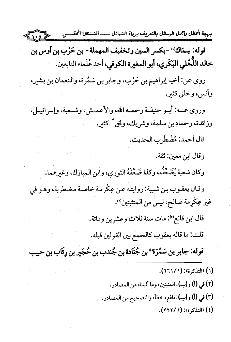 قوله: سِمَاك (¬1) -بكسر السين وتخفيف المهملة- بن حَرْب بن أوس بن خالد الذُّهْلي البَكْري، أبو المغيرة الكوفي، أحد عُلَماء التابعين.