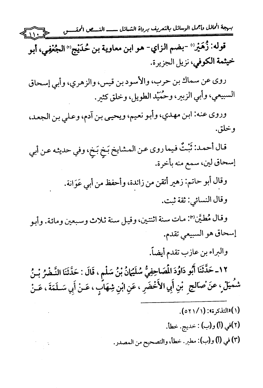 قوله: زُهَيْر (¬1) -بضم الزاي- هو ابن معاوية بن حُدَيْج (¬2) الجُعْفِي، أبو خيثمة الكوفي، نزيل الجزيرة.