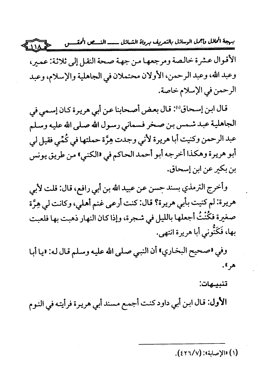 الأول: قال ابن أبي داود كنت أجمع مسند أبي هريرة فرأيته في النوم
