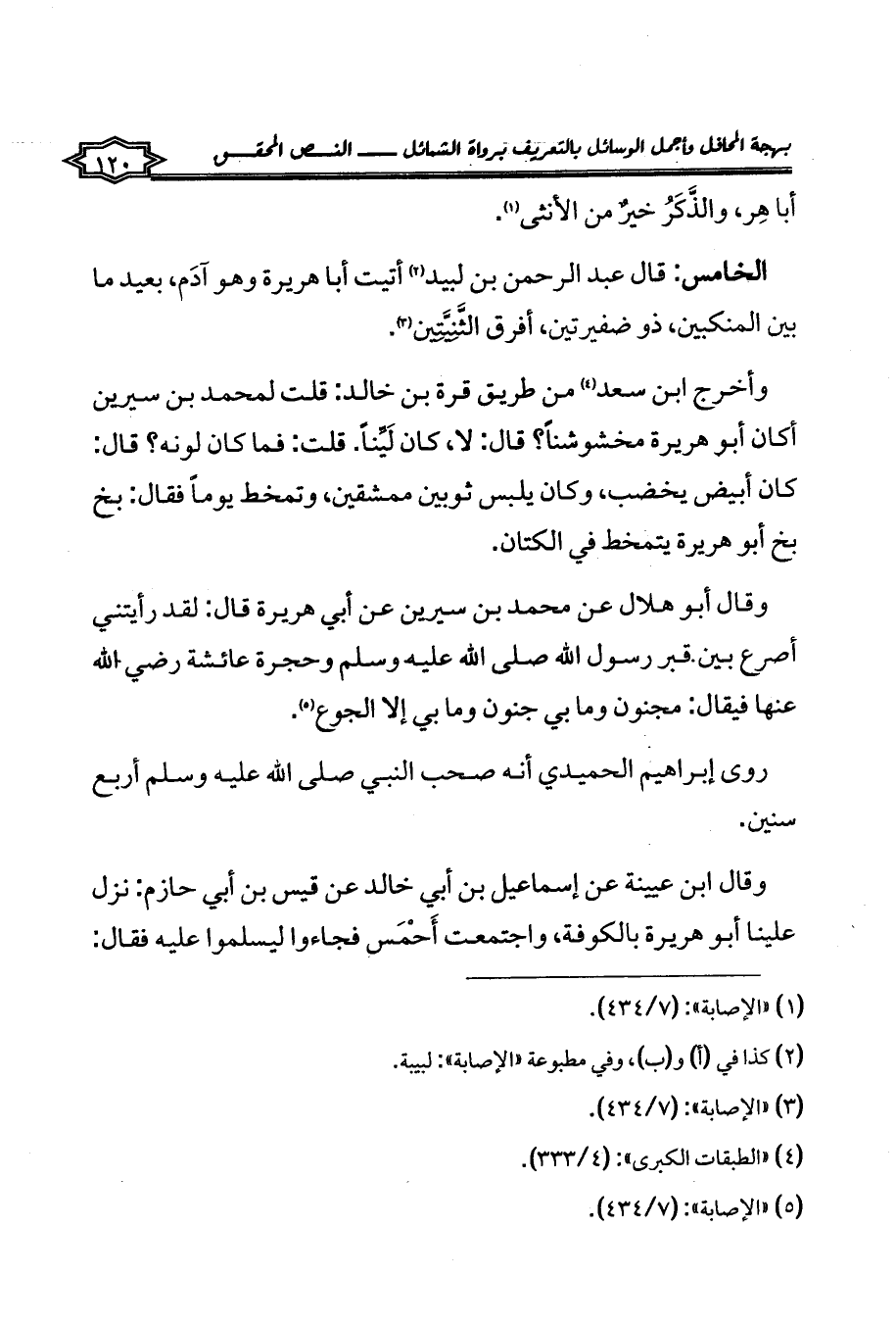 وأخرج ابن سعد (¬4) من طريق قرة بن خالد: قلت لمحمد بن سيرين أكان أبو هريرة مخشوشناً؟ قال: لا، كان لَيِّناً. قلت: فما كان لونه؟ قال: كان أبيض يخضب، وكان يلبس ثوبين ممشقين، وتمخط يوماً فقال: بخ بخ أبو هريرة يتمخط في الكتان.